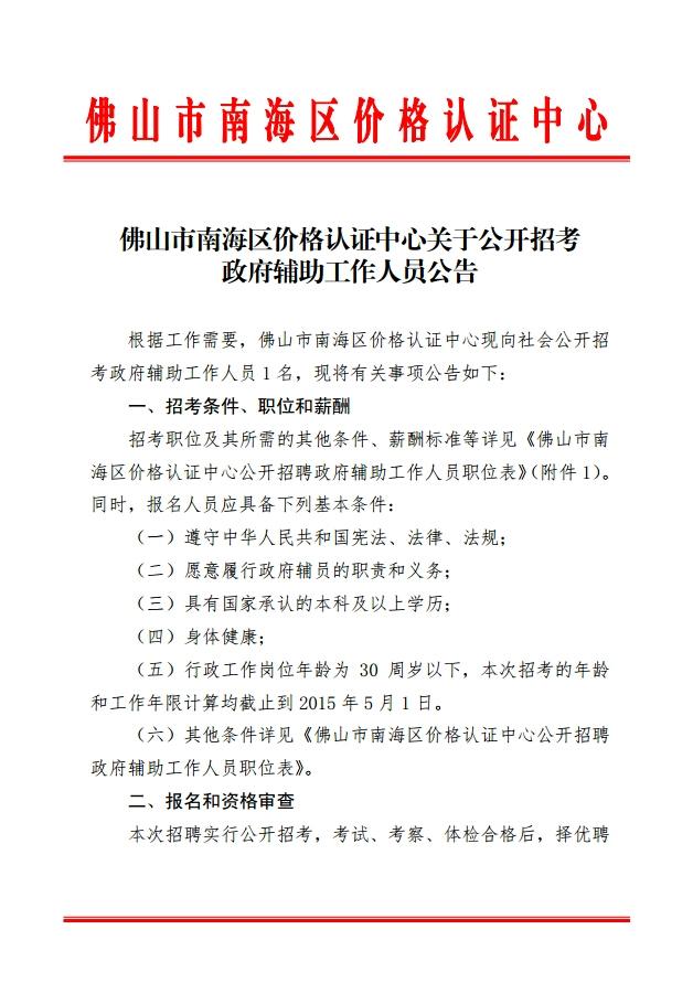 原標(biāo)題:佛山市南海區(qū)價(jià)格認(rèn)證中心關(guān)于公開招考政府輔助工作人員公告