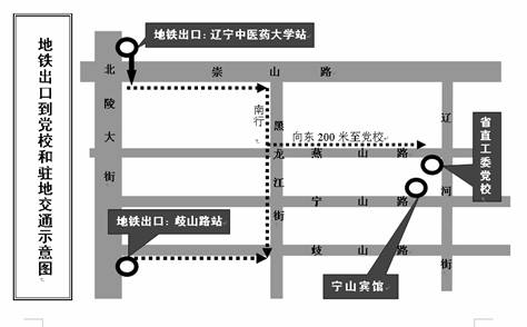 乘地鐵,可在遼寧中醫(yī)大學(xué)站下車(chē),步行兩站到省直屬機(jī)關(guān)工委黨校。