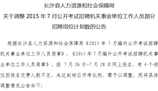 2015年7月湖南長沙考試機(jī)關(guān)事業(yè)單位調(diào)整招聘崗位計劃數(shù)公告