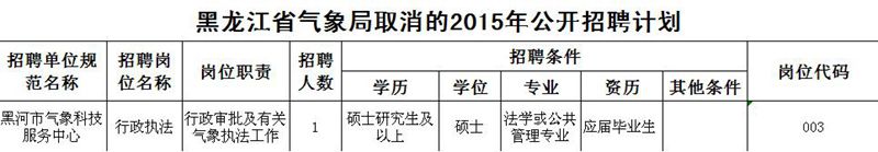 原標題:黑龍江省氣象局關(guān)于取消黑河市氣象科技服務(wù)中心公開招聘工作人員崗位的通知
