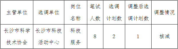 原標(biāo)題:長沙市科技活動中心公開選調(diào)工作人員調(diào)整選調(diào)計劃的通知