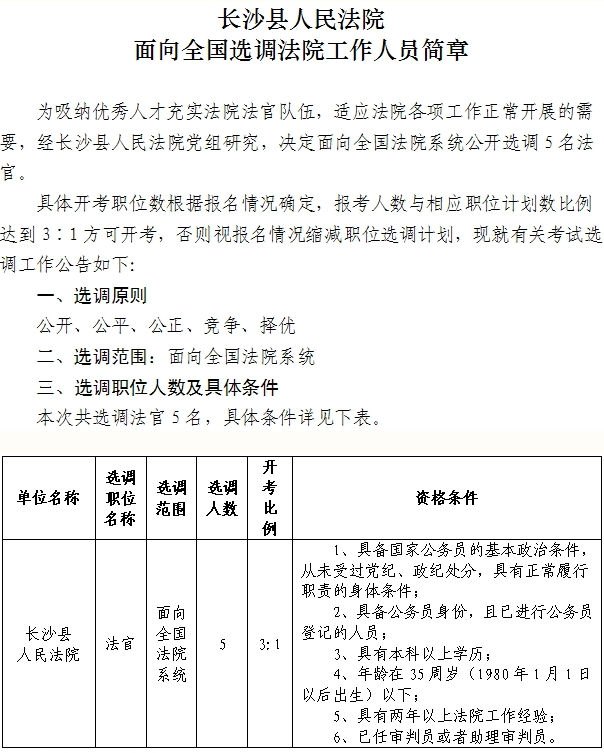 2015湖南長沙縣人民法院選調(diào)5人公告
