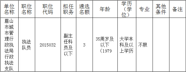 2015四川眉山市城市管理行政執(zhí)法局遴選執(zhí)法隊員3人公告