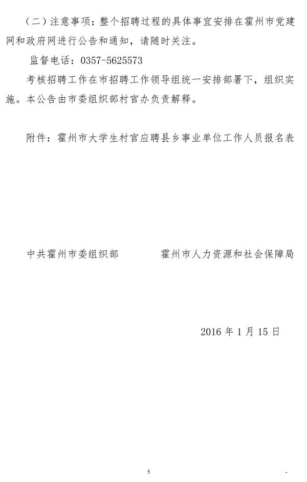 原標題:霍州市從大學(xué)生村官中招聘縣鄉(xiāng)事業(yè)單位工作人員公告