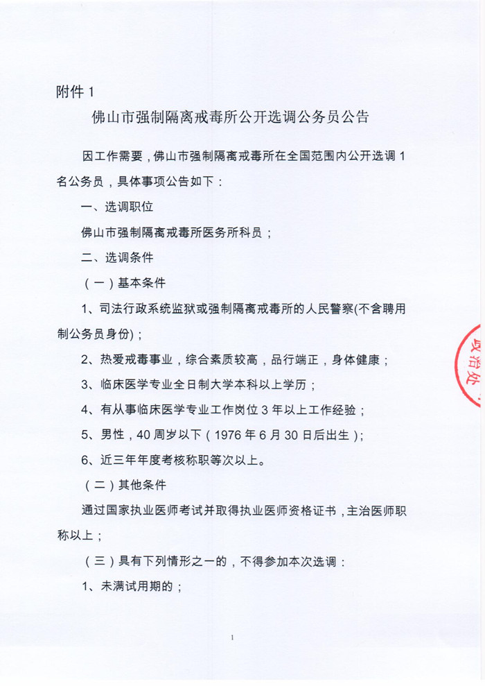 2016廣東佛山市強(qiáng)制隔離戒毒所選調(diào)公務(wù)員1名公告