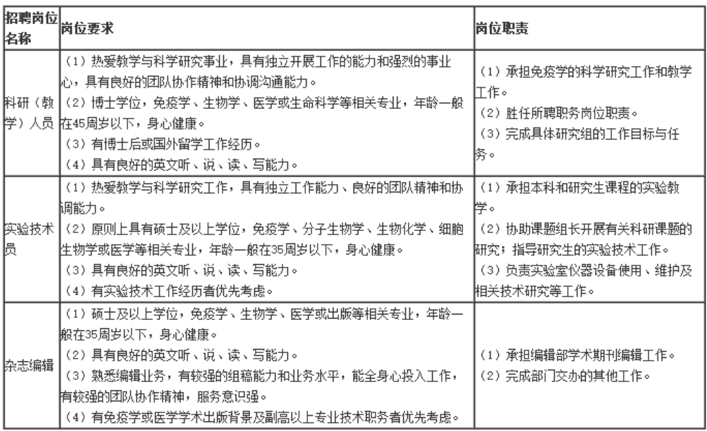免疫所因工作需要,根據(jù)《上海市事業(yè)單位公開招聘人員暫行辦法》(滬人社專發(fā)〔2009〕45號(hào))規(guī)定,按照公開、平等、競爭、擇優(yōu)的原則,現(xiàn)面向社會(huì)公開招聘工作人員,公告如下: