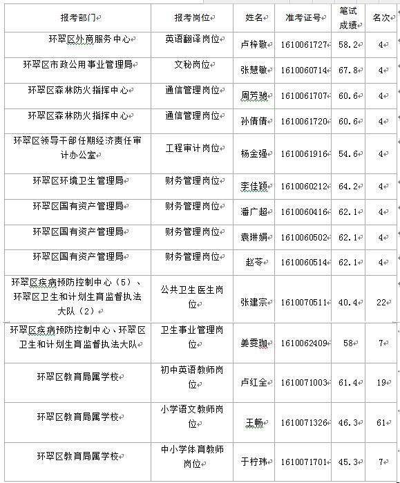 根據(jù)《關(guān)于確定2016年威海市環(huán)翠區(qū)屬事業(yè)單位公開招聘筆試合格分?jǐn)?shù)線和面試資格審查有關(guān)問題的通知》規(guī)定,面試人選因資格審查不合格、棄權(quán)或遞補(bǔ)棄權(quán)造成職位上的人員空缺,由招錄機(jī)關(guān)按筆試成績依次遞補(bǔ)?,F(xiàn)將遞補(bǔ)名單予以公布。請下列考生于6月12日下午4點之前提交資格審查材料,具體要求見《關(guān)于確定2016年威海市環(huán)翠區(qū)屬事業(yè)單位公開招聘筆試合格分?jǐn)?shù)線和面試資格審查有關(guān)問題的通知》。