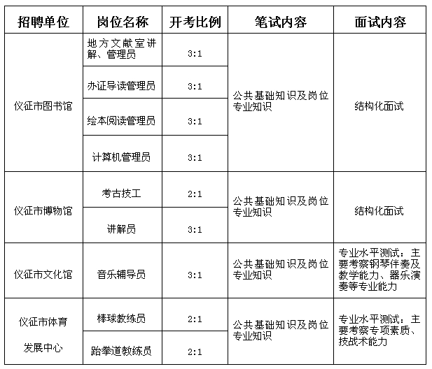筆試采取閉卷考試方式,按照規(guī)定的開(kāi)考比例進(jìn)行(見(jiàn)下表)。主要測(cè)試公共基礎(chǔ)知識(shí)及報(bào)考崗位專業(yè)知識(shí)。考試不指定輔導(dǎo)用書,采用百分制計(jì)分。筆試具體時(shí)間、地點(diǎn)及相關(guān)要求以筆試準(zhǔn)考證為準(zhǔn)。