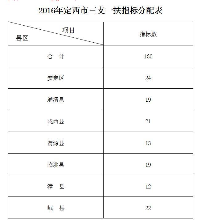 2016甘肅定西市普通高校畢業(yè)生三支一扶計劃指標通知