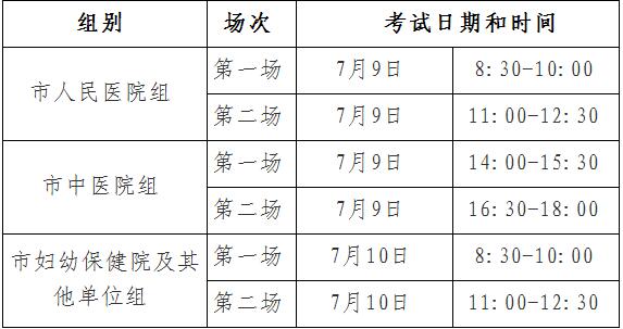 本次筆試分三組進行,由于報考人員多,每組分別進行兩場筆試,具體安排為: