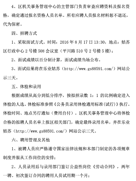 原標(biāo)題:2016年姑蘇區(qū)機(jī)關(guān)事務(wù)管理中心公開(kāi)招聘公益性崗位工作人員簡(jiǎn)章