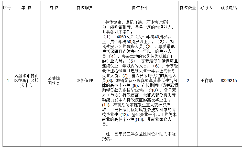 2016貴州六盤(pán)水鐘山編外人員招聘公告【招2人】