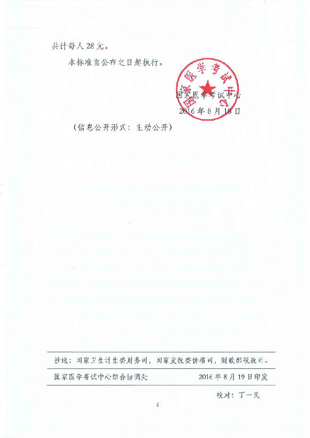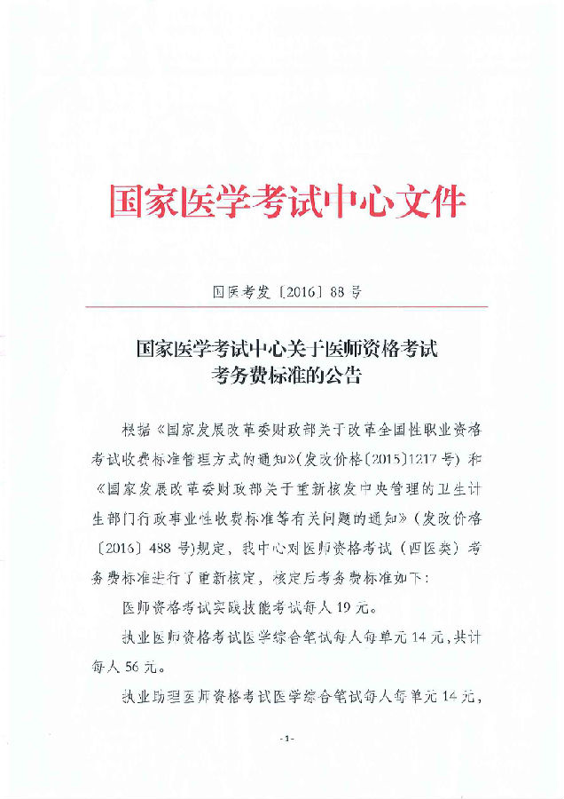 2016國家醫(yī)學(xué)考試中心醫(yī)師資格考試考務(wù)費(fèi)標(biāo)準(zhǔn)公告