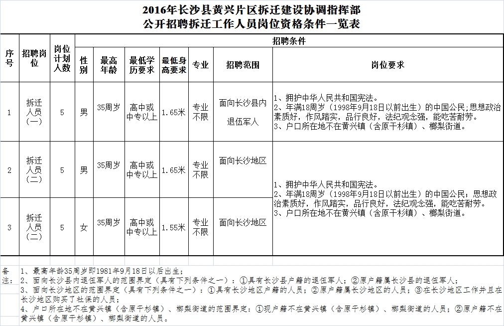 2016湖南長沙縣黃興片區(qū)拆遷建設(shè)協(xié)調(diào)指揮部考試招聘征地拆遷工作人員公告