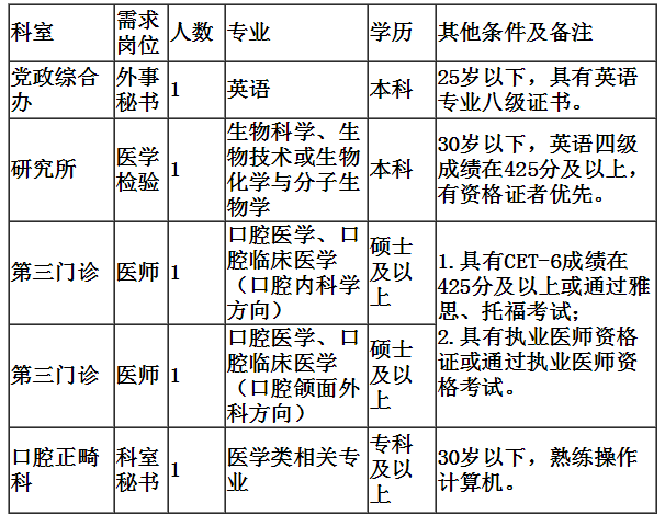 昆明醫(yī)科大學(xué)附屬口腔醫(yī)院(云南省口腔醫(yī)院)是云南省規(guī)模、設(shè)備、技術(shù)力量最雄厚的三級口腔??漆t(yī)院,因醫(yī)療業(yè)務(wù)發(fā)展需要,特向社會誠聘工作人員,現(xiàn)將有關(guān)事項告示如下: