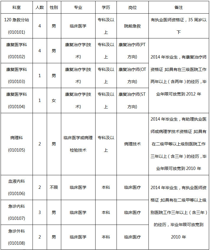 根據(jù)《安徽省事業(yè)單位公開招聘人員暫行辦法》和《阜陽市人民政府辦公室關(guān)于市直公立醫(yī)院人事編制制度改革的意見》(阜政辦〔2013〕44號)文件精神及醫(yī)院工作需要,本著“民主、公開、競爭、擇優(yōu)”的原則,現(xiàn)將我院部分急需專業(yè)人員招聘事宜公告如下: