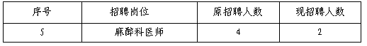 2016年福建中醫(yī)藥大學(xué)附屬人民醫(yī)院招聘工作人員方案(三)崗位序號(hào)5麻醉醫(yī)師崗位實(shí)際報(bào)名人數(shù)與崗位擬聘用人數(shù)比例未達(dá)到開(kāi)考比例3:1,現(xiàn)減少該崗位擬聘人數(shù),具體情況如下: