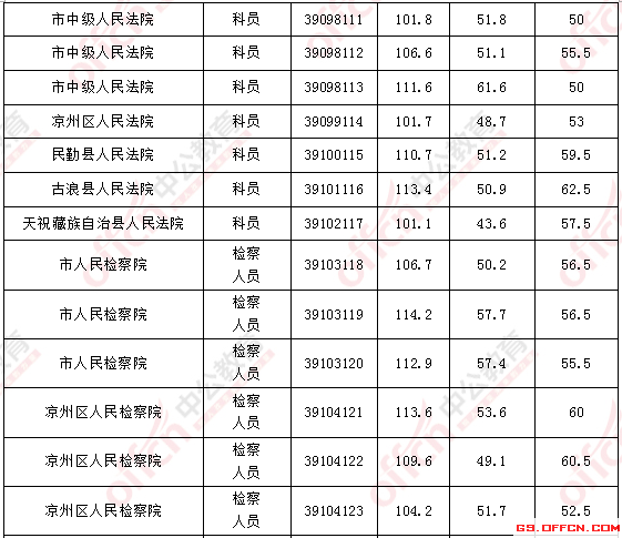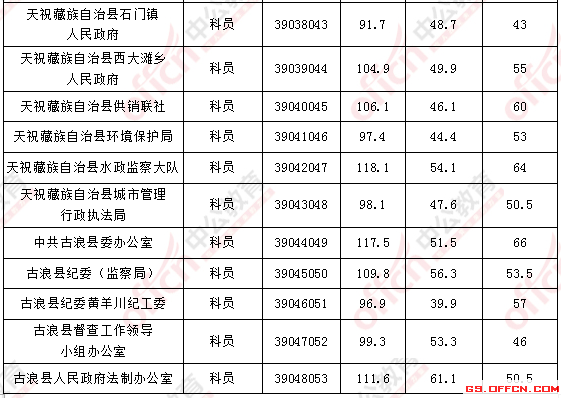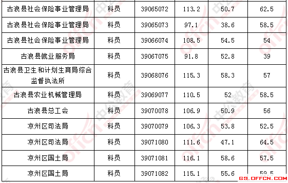 溫馨提示:根據(jù)甘肅省公務(wù)員考試招錄公告得知,甘肅省公務(wù)員面試人員確定方式為招錄單位在資格復(fù)審的基礎(chǔ)上,根據(jù)應(yīng)試人員筆試總成績從到低分的順序確定參加面試人員(筆試有一門缺考或一門成績?yōu)榱阏撸坏么_定為面試人選)。省、市州考錄辦分別按職位筆試成績,從到低分的順序,依次按計劃招錄人數(shù)與面試人數(shù)1∶3的比例確定面試人員。所以并沒有實際意義上的分數(shù)線,以下內(nèi)容僅供參考。