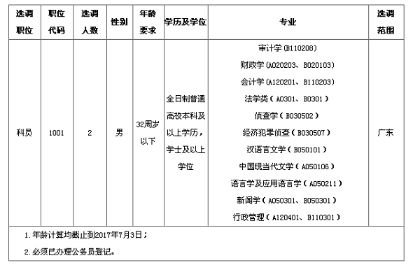 備注:正在試用期的,接受處間或接受審計、紀律審查、司法偵察的,違反計劃生育和有關規(guī)定的,以及具有其他不宜參加公開選調情形的均不列入公開選調對象。