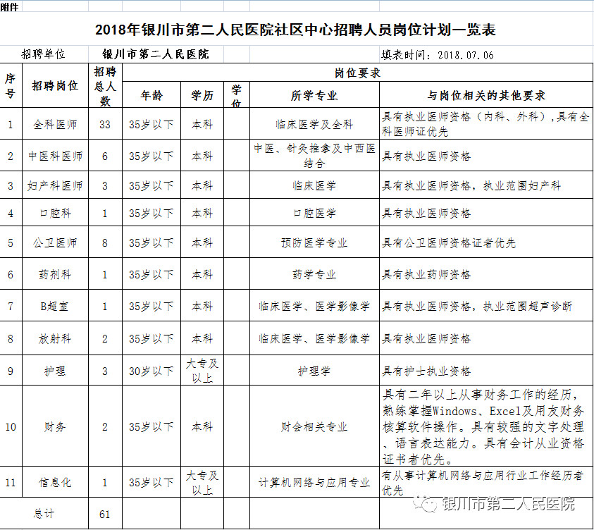2018寧夏銀川市第二人民醫(yī)院招聘61人公告