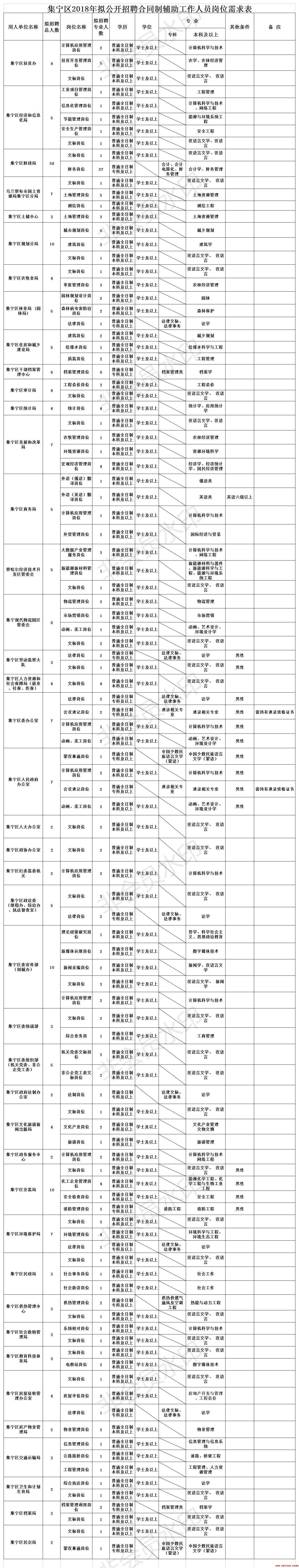 為了有效緩解集寧區(qū)各類人員短缺的現(xiàn)狀,更好地推進我區(qū)各項事業(yè)快速發(fā)展,經(jīng)區(qū)委、區(qū)政府研究決定,擬面向社會公開招考聘用合同制輔助工作人員。本次擬計劃公開招聘合同制輔助工作人員225名,涉及55個崗位,近70個專業(yè),詳情請見《集寧區(qū)2018年擬公開招聘合同制輔助工作人員崗位需求表》。報考時間擬定為2018年9月6日,考試時間擬定為9月15日。具體招聘事宜以烏蘭察布市人事考試信息網(wǎng)(http://www.wmpta.org.cn)公告為準,請報考人員隨時關注。