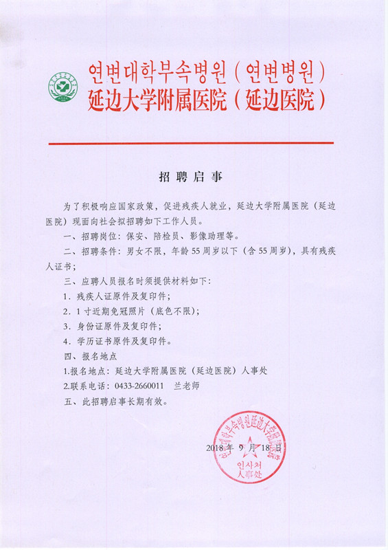 本文章轉(zhuǎn)自延邊大學(xué)附屬醫(yī)院官方網(wǎng)站,原標題為:招聘啟事1