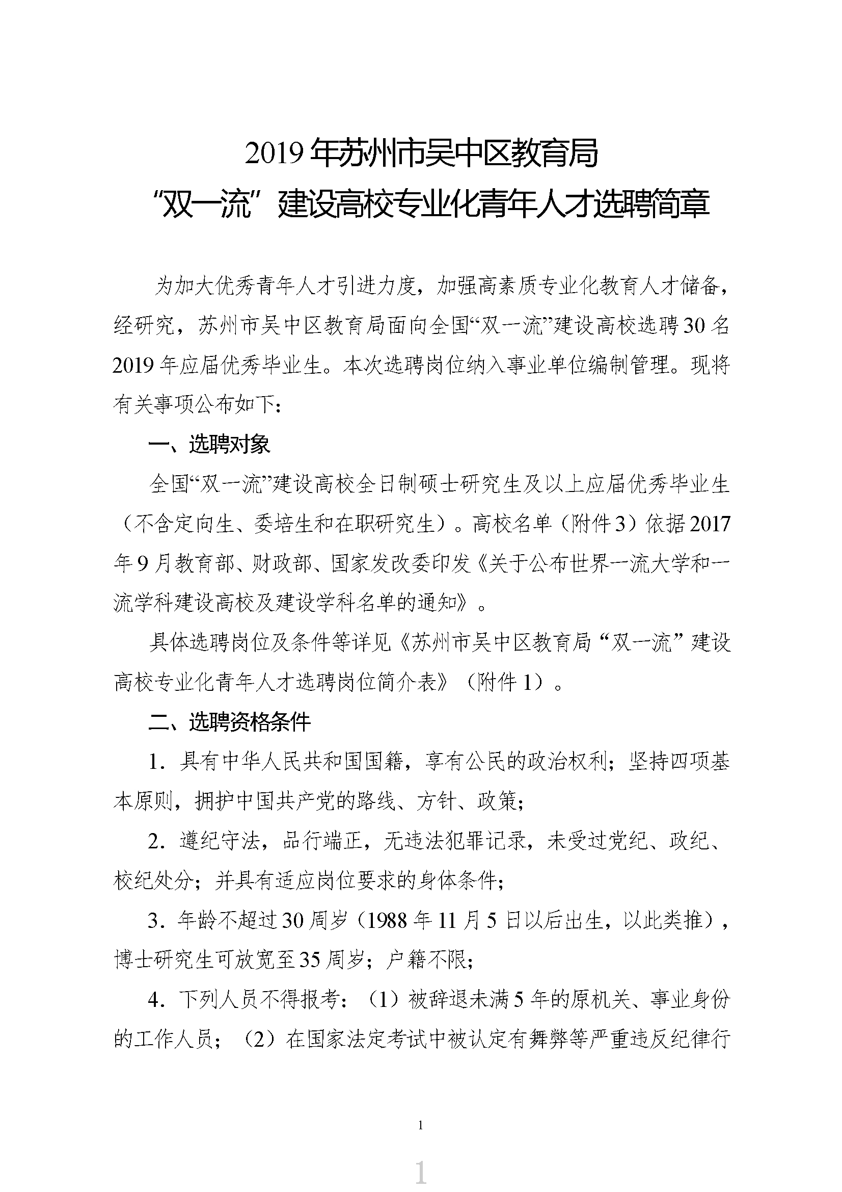 原標(biāo)題:2019年蘇州市吳中區(qū)教育局“雙”建設(shè)高校專業(yè)化青年人才選聘簡章