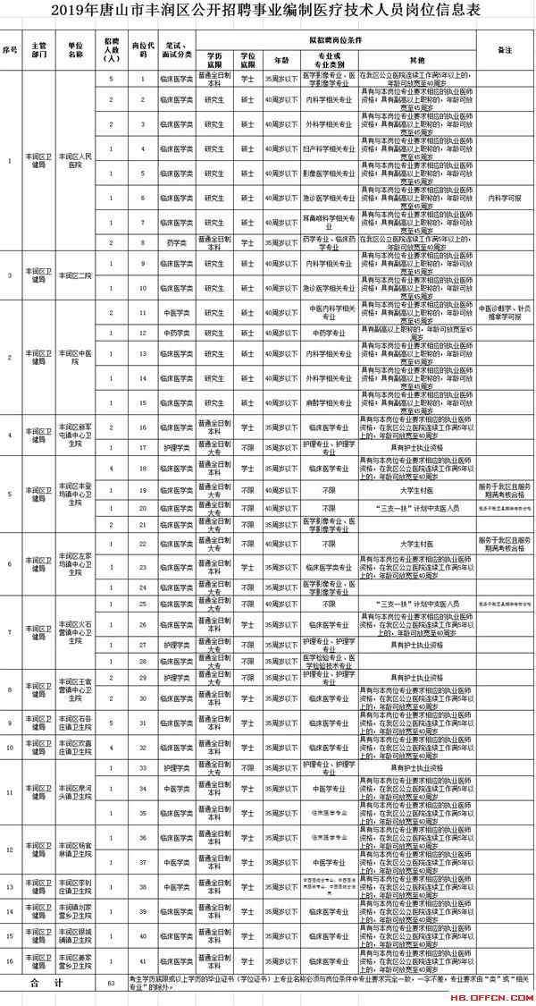 2019年唐山市豐潤(rùn)區(qū)招聘事業(yè)編制醫(yī)療技術(shù)人員63人公告