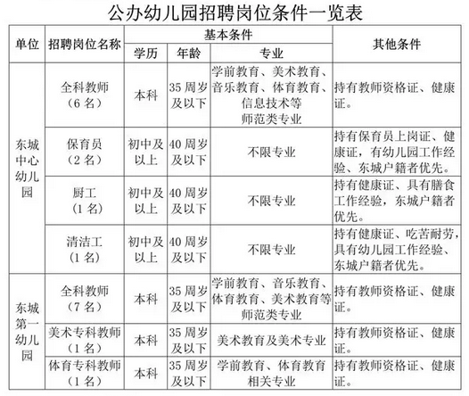 東莞市東城中心幼兒園,東城第一幼兒園是隸屬東城街道辦事處的兩所公辦園,因工作需要,擬面向社會(huì)公開招聘15名聘用教師,2名保育員,1名廚工,1名清潔工。