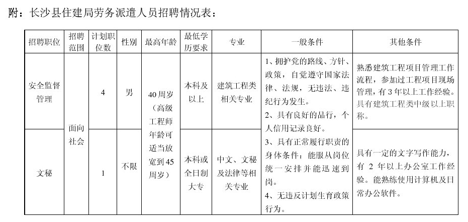 原標(biāo)題:長沙縣住房和城鄉(xiāng)建設(shè)局招聘勞務(wù)派遣人員簡章
