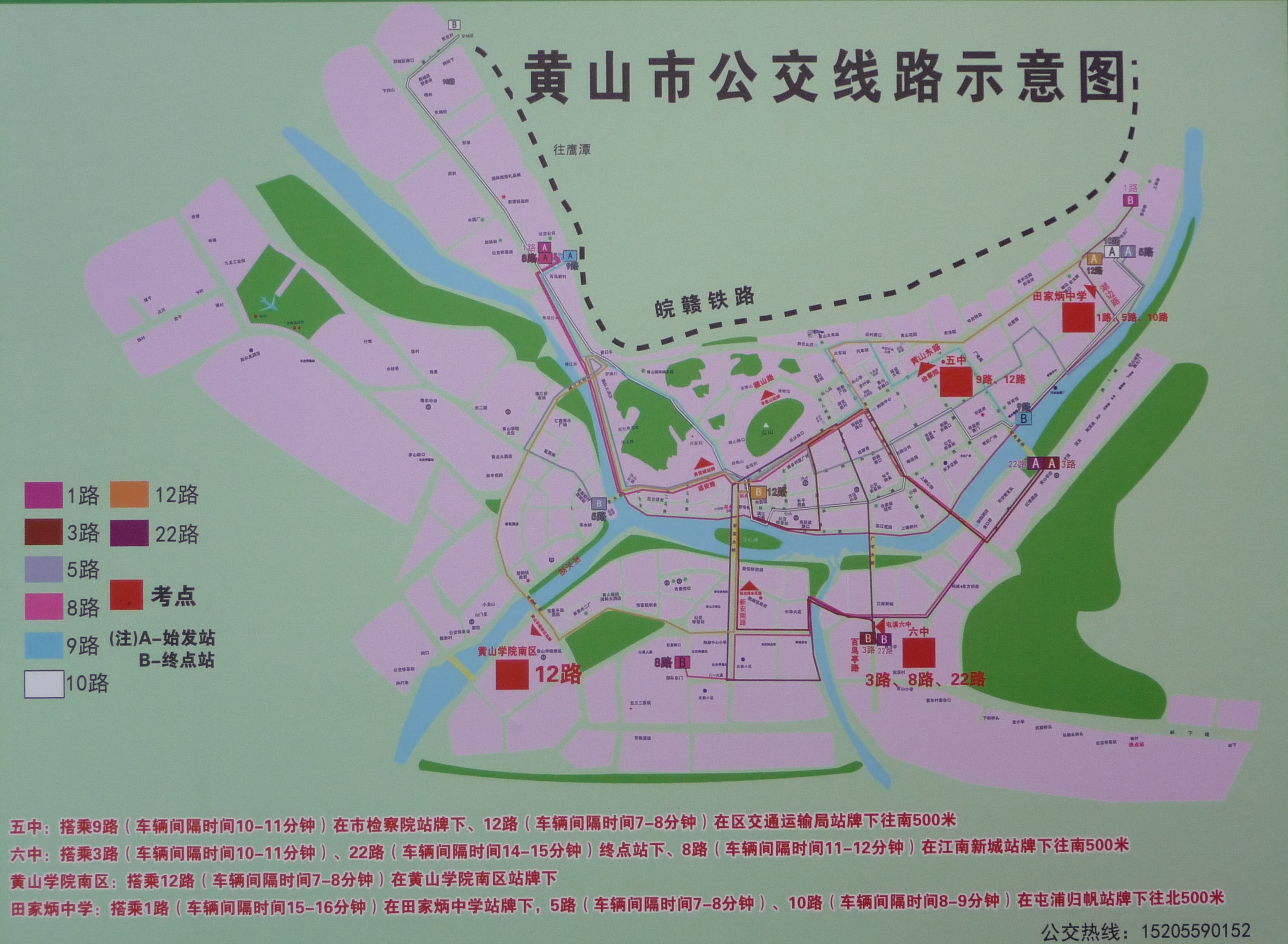 2015年安徽省黃山市公務(wù)員考試筆試考點(diǎn)公交路線示意圖
