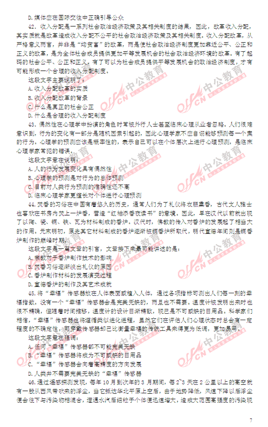 2014年國家公務員考試行測匯總