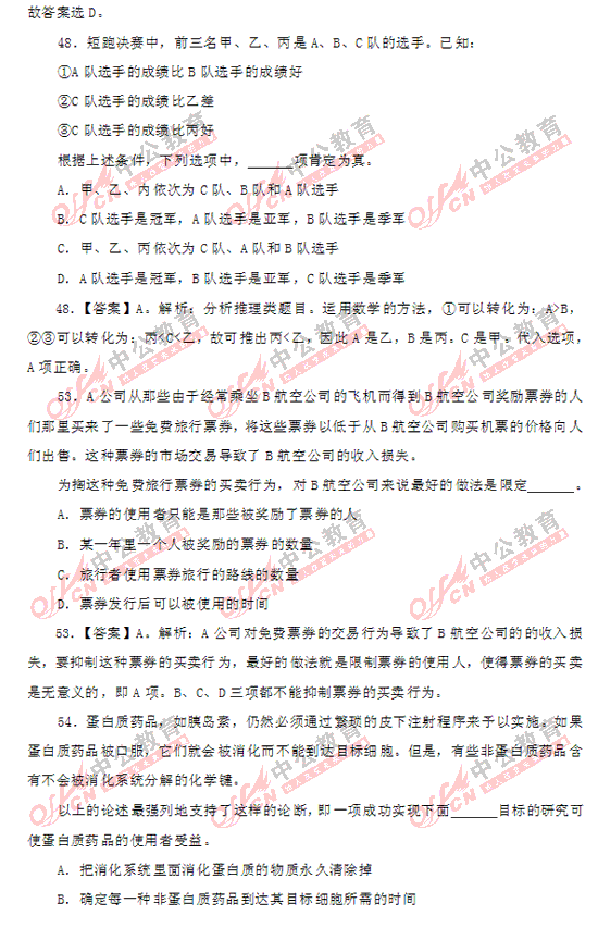 2011上海市公務(wù)員考試行測(A類)部分答案及解析