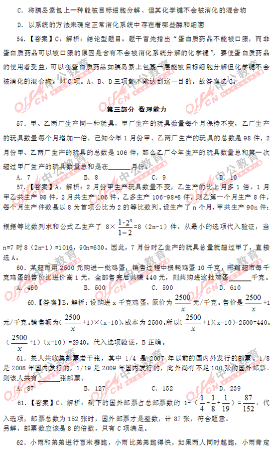 2011上海市公務(wù)員考試行測(A類)部分答案及解析
