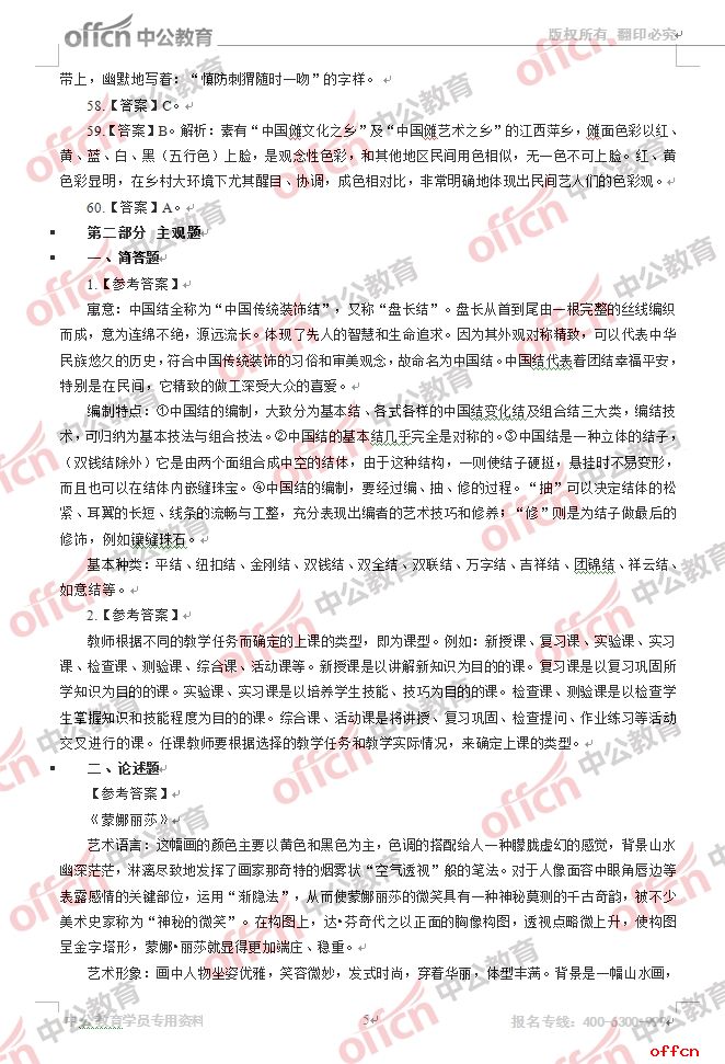 2017年江西教師招聘《初中美術(shù)》試題答案及解析