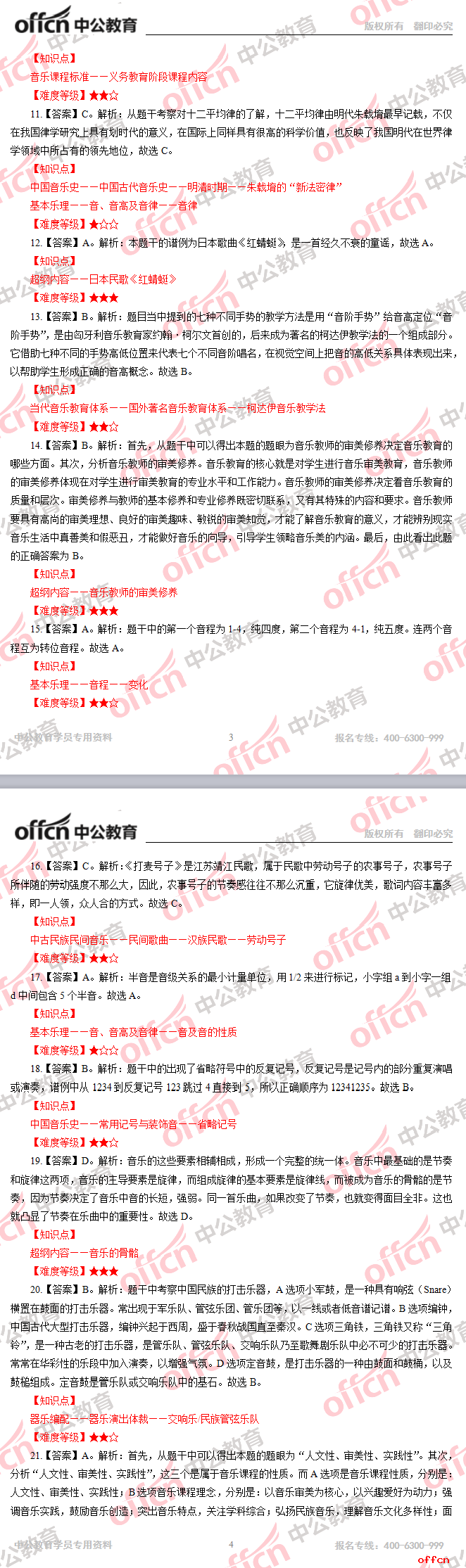 2017年江西教師招聘《小學(xué)音樂(lè)》試題答案及解析