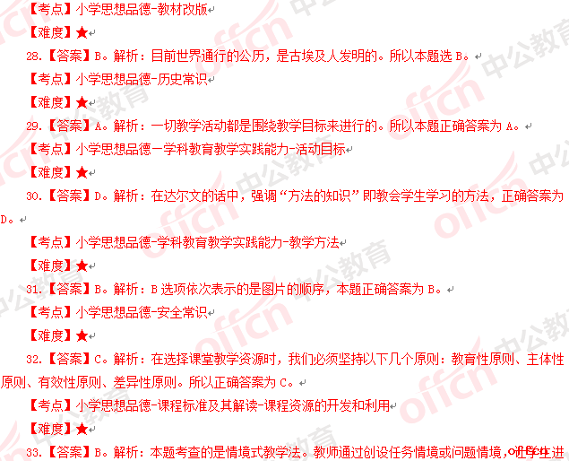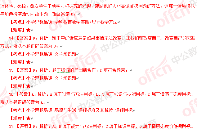 2017年江西教師招聘《小學(xué)品德》試題答案及解析