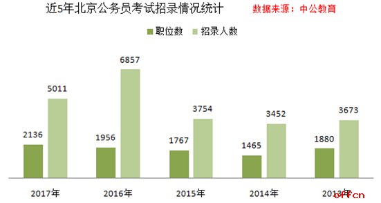 近5年來,北京公務(wù)員考試于2016年招錄6857人,達到峰,2016年之前穩(wěn)定在三千人左右,這也說明隨著京津冀一體化建設(shè)的逐步推進和加快,首都對于公務(wù)人員的需求量也與之相應(yīng)增加,北京作為首都,是全國政治、經(jīng)濟和文化中心,具有強大的資源優(yōu)勢,希望考生們踴躍報考。
