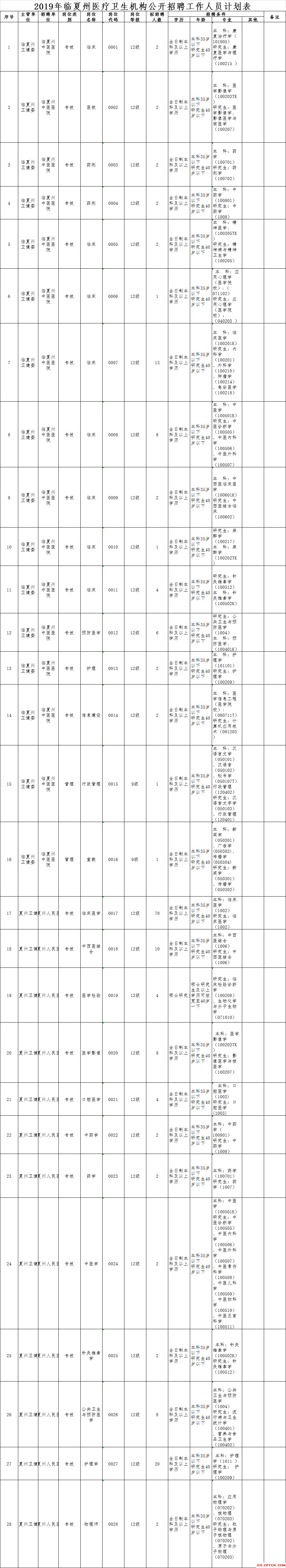 2019年甘肅臨夏事業(yè)單位考試醫(yī)療崗招902人職位表