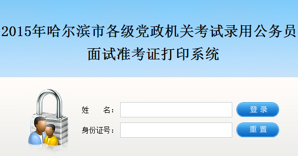 2015年黑龍江省【哈爾濱】公務(wù)員面試準(zhǔn)考證打印入口