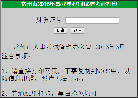 2016江蘇常州市事業(yè)單位面試準(zhǔn)考證打印入口