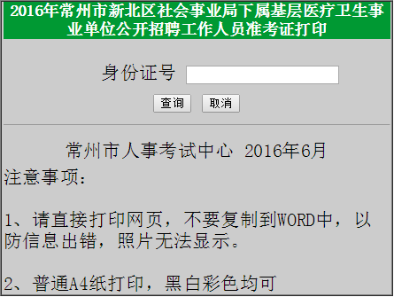2016江蘇常州市新北區(qū)社會事業(yè)局下屬基層醫(yī)療衛(wèi)生事業(yè)單位招聘準(zhǔn)考證打印入口