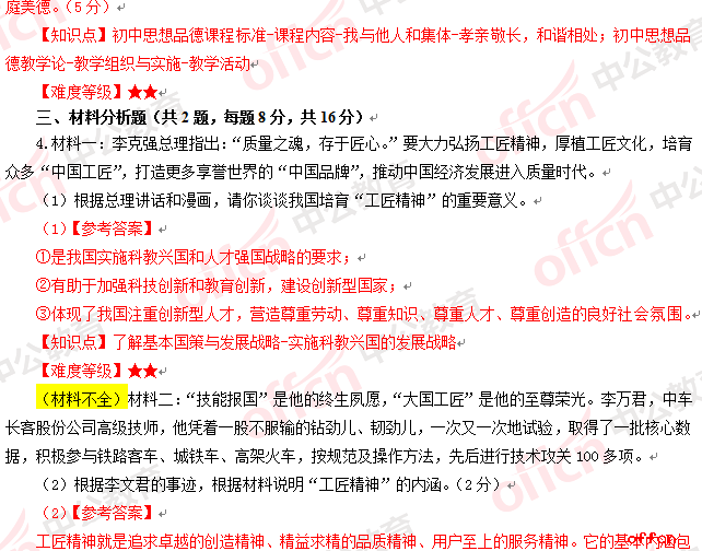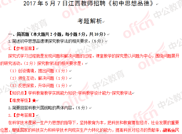 2017年江西教師招聘 《初中思想品德》試題答案及解析