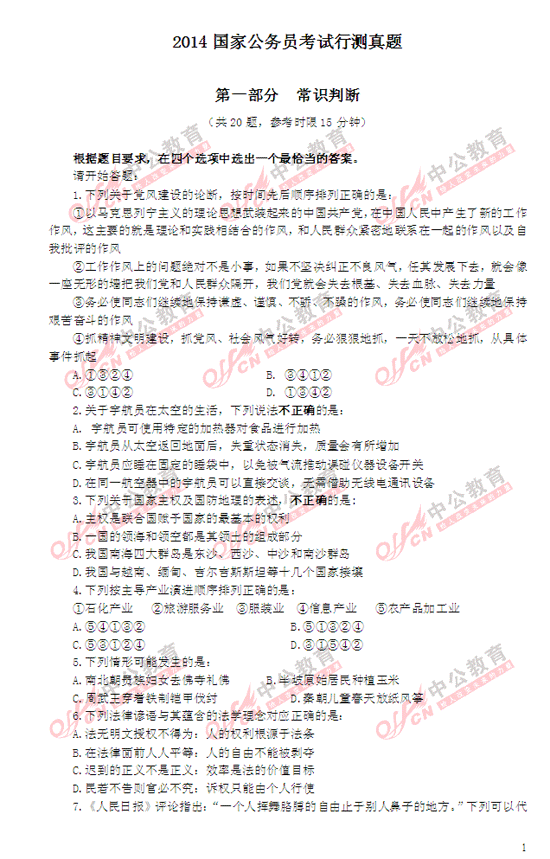 點擊查看:2014國家公務員考試 及答案匯總