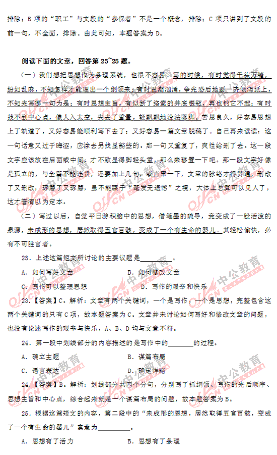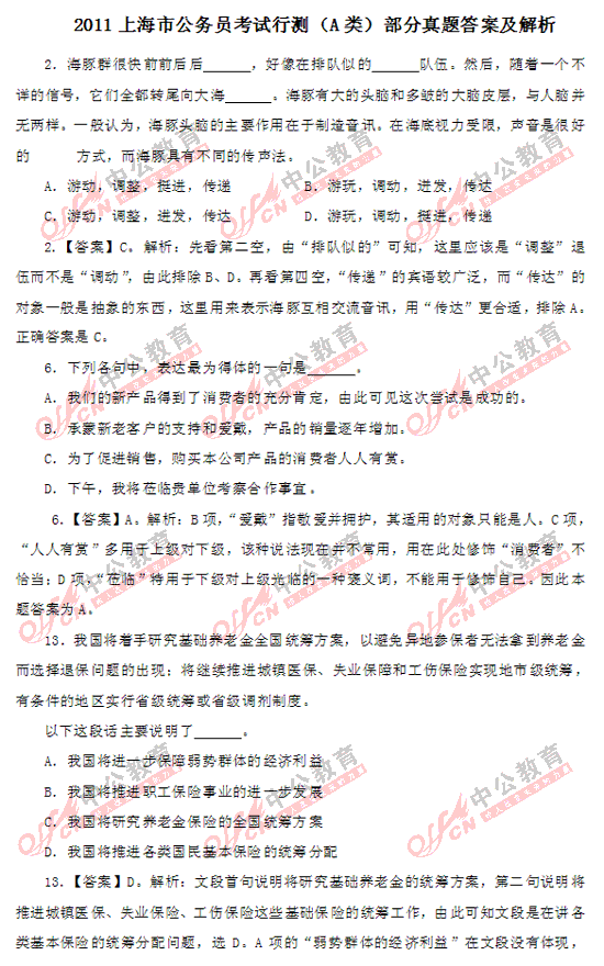 2011上海市公務(wù)員考試行測(A類)部分答案及解析