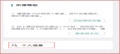 閱讀說明后,點(diǎn)擊右上角的個(gè)人信息---進(jìn)行完善信息,請(qǐng)每位同學(xué)必須將個(gè)人信息填寫完整、真實(shí)、有效,以便能夠準(zhǔn)時(shí)接收到我們所發(fā)送的課程通知。