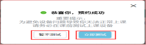 (2)如目前所用設(shè)備并非上課設(shè)備,可以先選擇"暫不測(cè)試",待后期上課時(shí),提前用上課設(shè)備進(jìn)行設(shè)備自測(cè)。