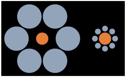 艾賓浩斯錯覺是一種對實際大小知覺上的錯視。在最的錯覺圖中,兩個完全相同大小的圓放置在一張圖上,其中一個圍繞較大的圓,另一個圍繞較小的圓;圍繞大圓的圓看起來會比圍繞小圓的圓還要小。