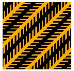 佐爾拉錯覺是指一些平行線由于一些附加線段的影響而看成不平行的現(xiàn)象。對于這類幾何錯覺,神經(jīng)生理學(xué)理論認為,當兩個輪廓彼此接近時,它們在視網(wǎng)膜上的投影也彼此接近,造成視網(wǎng)膜上的神經(jīng)細胞間存在互相抑制的現(xiàn)象出現(xiàn),進而引起幾何圖形形狀和方向的錯覺。但其實較粗的黃線是平行的。