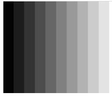 (4)馬赫帶現(xiàn)象 馬赫帶是視覺系統(tǒng)的側(cè)抑制作用引起的。當一個視覺感受器受到刺激的時候,由此產(chǎn)生的神經(jīng)沖動將對鄰近部位細胞輸入的信號產(chǎn)生抑制性影響。在明暗交界的地方,亮區(qū)一側(cè)的抑制作用大于暗區(qū)的抑制作用,從而產(chǎn)生暗區(qū)更暗,亮區(qū)更亮的馬赫帶現(xiàn)象。